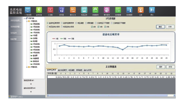 可繪制顯示逆變器電壓時間曲線、功率時間曲線等,直流側(cè)輸入電流實時曲線、交流側(cè)逆變輸出電流曲線,并采集與顯示日發(fā)電量等電參量